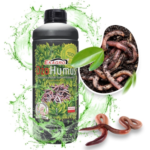 DżoHumus 1 L – naturalny, płynny nawóz organiczny z wermikompostu. Wzmacnia korzenie, poprawia żyzność gleby i odporność roślin.